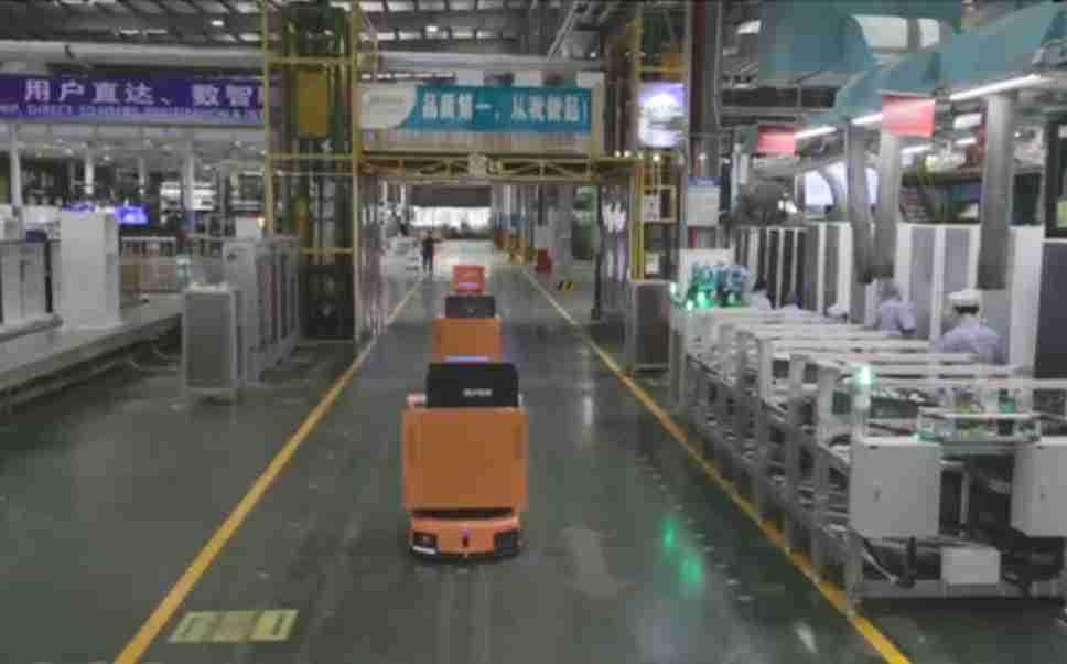 为车载冰箱物流配送打造的智能解决方案,,,包含产中物流通过潜伏举升AMR搬运至线边,,产后成品物流智能仓储,,,流程包含产中物流智能齐套入库,,,,线边安灯叫料AMR智能配送至线边,,,,成品入库、、、、出库,,,通过无人堆高车机器人,,,,智能仓储管理替代人工作业管理,,,,实现更高存储、、、、更高效率、、、、更具柔性化的解决方案。。。。