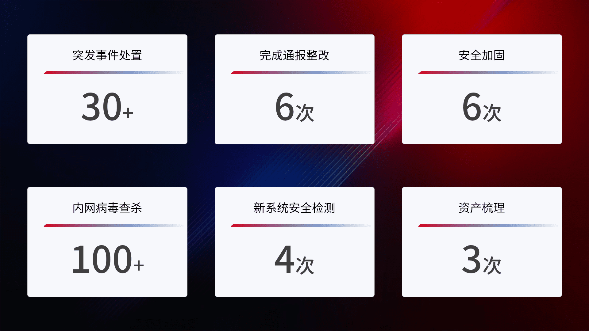 安全水平提升与事件响应:派驻经验丰富的安全工程师,,提升医院网络安全防护的整体水平;建立突发网络安全事件的处置流程,,,提高响应速度和处置能力。。